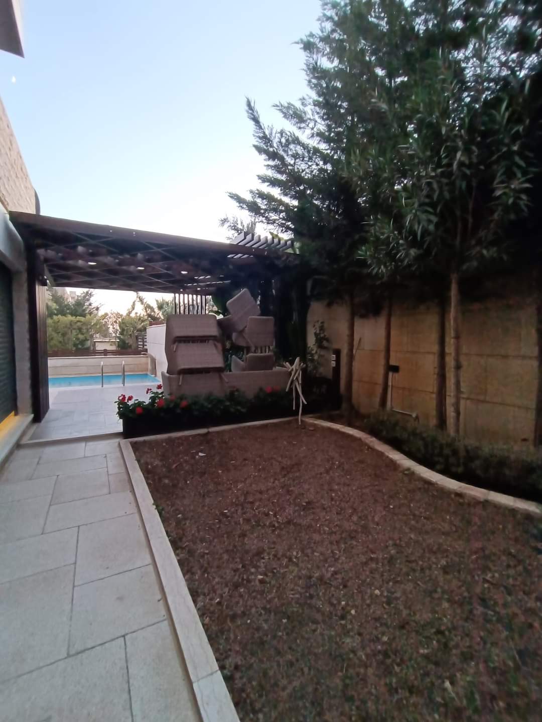 فيلا للإيجار في دابوق باحدث التصميمات والمواصفات تتكون من خمس غرف مطبخ اربع حمامات ثلاث صالونات الحديقه تدفئه مركزيه تكييف الفيلا كامله خصوصيه تامه مفروشه باحدث الاثاث جديد بالكامل