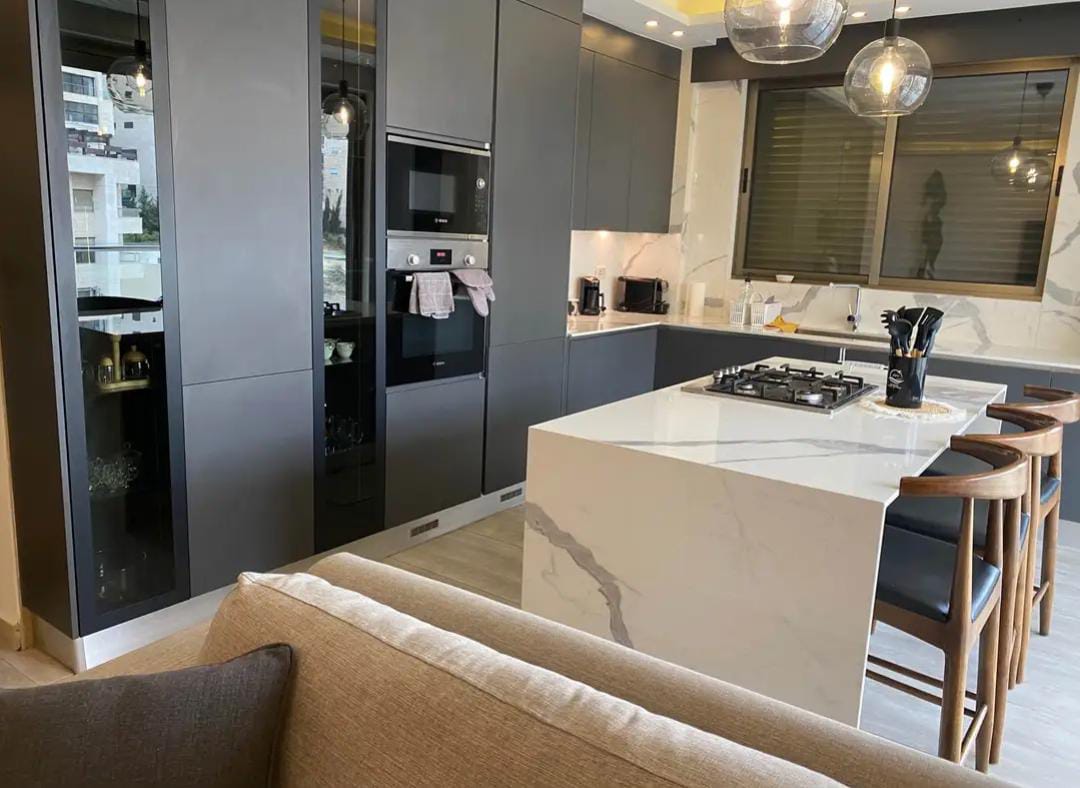 شقه مكونه من غرفتين نوم اثنين حمام صاله مطبخ نظام امريكي مجهزه باحدث تجهيزات كهربائيه وكل ما يلزم المنزل من معدات وباحدث تشطيبات