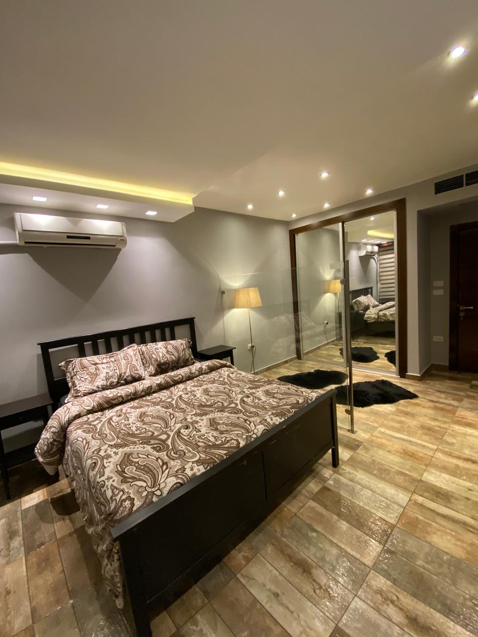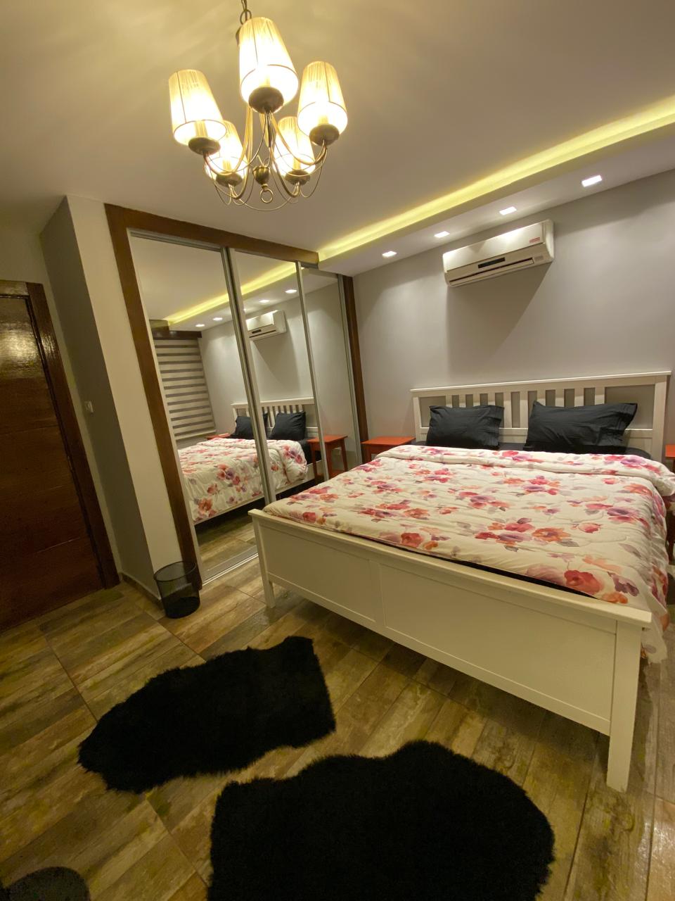 الطابق الثاني، غرفتين نوم واحدة ماستر مع حمامها، وهناك حمام ثاني، غرف النوم مزودة بخزانات في الحائط.. المطبخ تصميم جميل ومجهز بالكامل.. الشقة هادئة، وبها بلكون مطل على منظر حلو.. التكييف مركزي /حامي بارد.. ولها موقف سيارة تحت العمارة.. الشقة مزودة بمضخة لتقوية الماء في الحمام
