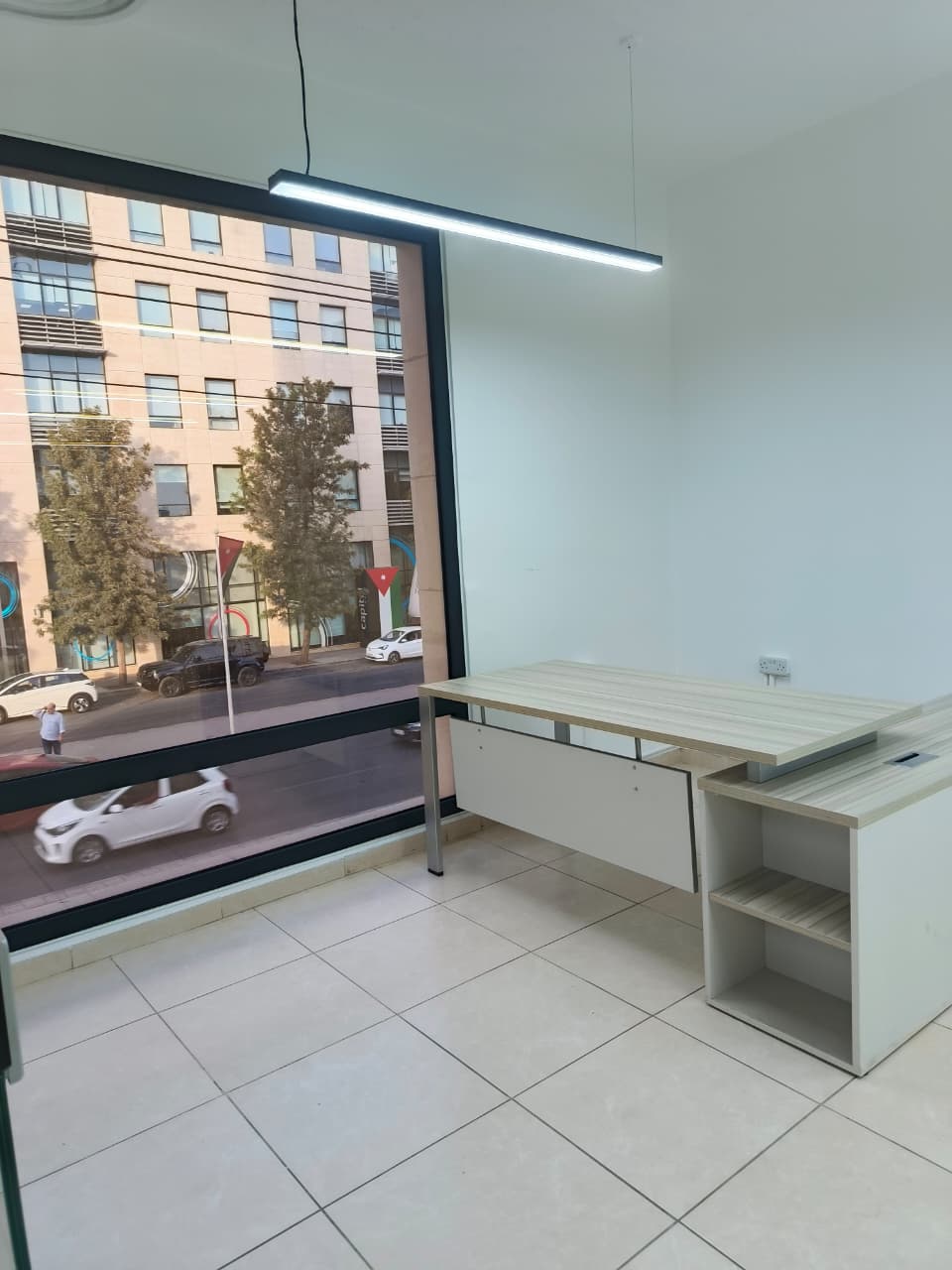 المكتب الاول بمساحة 100 متر، وديكورات كاملة، وكنديشنات حديدة، اطلالة رائعة بانوراما، طابق ثاني مكتب تجاري كاملة، متوفر كافة الخدمات، المكتب جاهز للاستخدام وبشكل مباشر، الايجار السنوي 9000 دينار، الموقع: ضمن مجمع تحاري حيوي