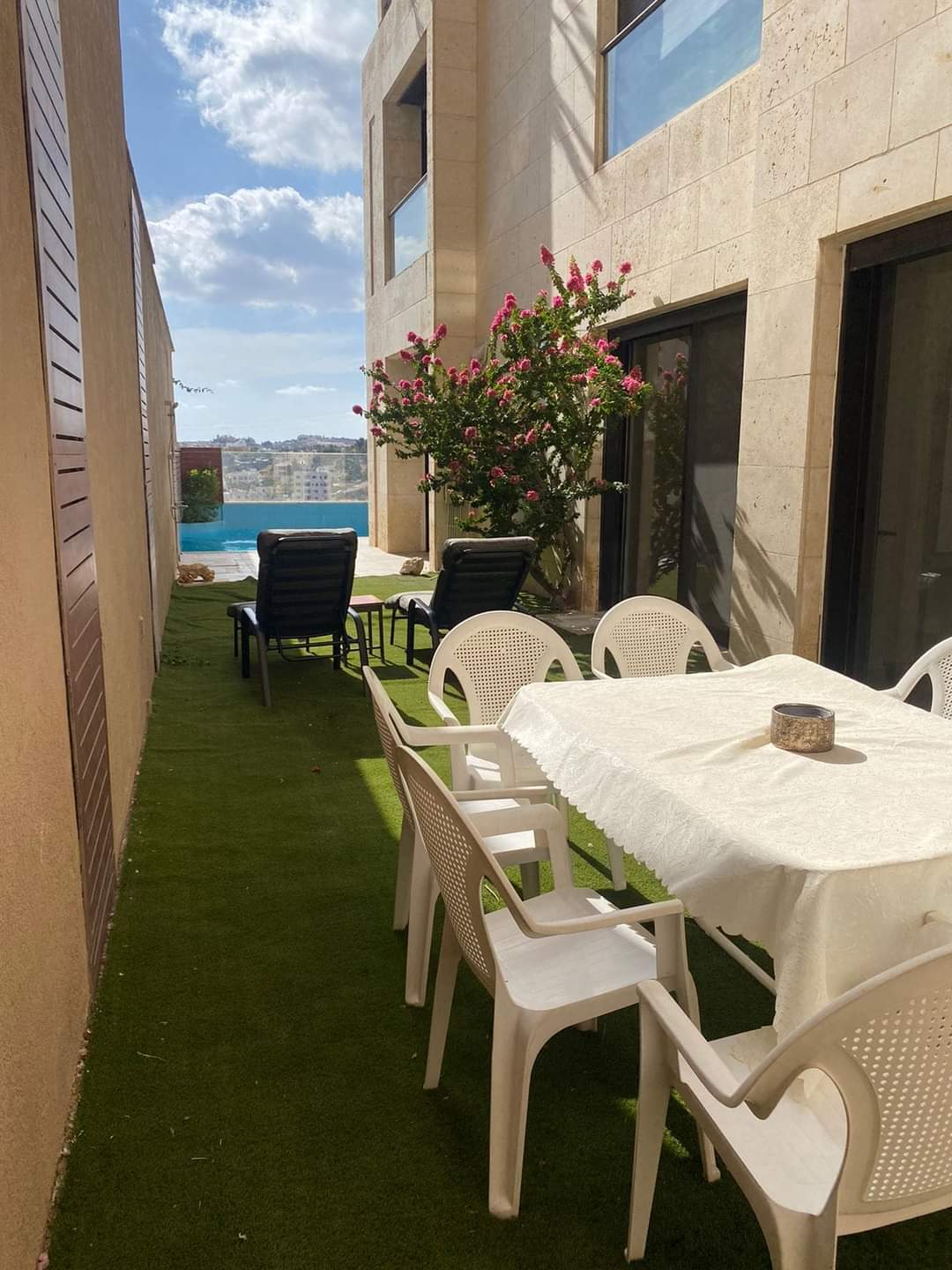 تسوية كاشفه مطله مشمسه بركة سباحة وجلسات خارجية بإطلالة بانوراميه