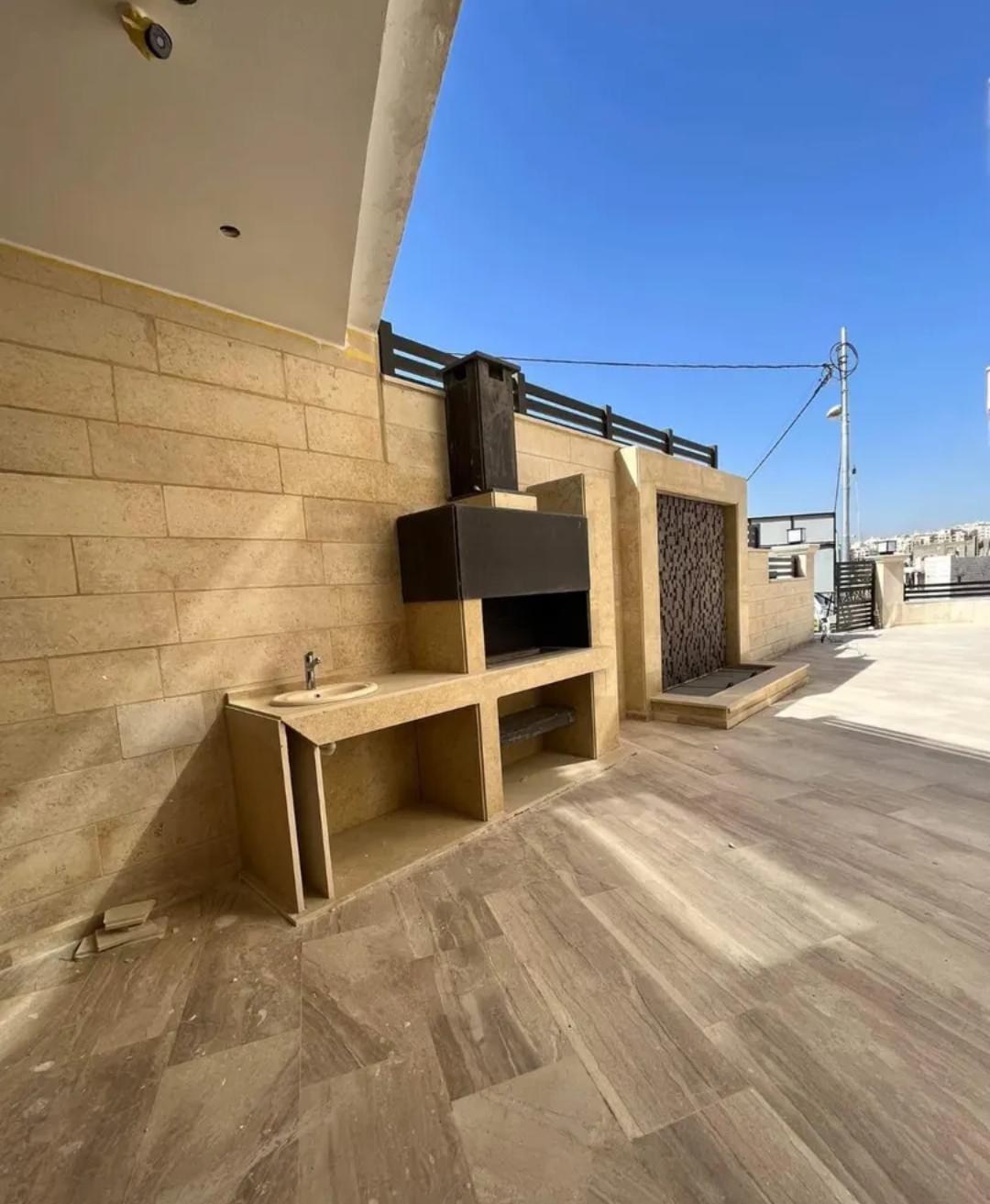 تتميز الشقق الارضيه بمساحات خارجيه 250 متر مع شلال وباربكيو .