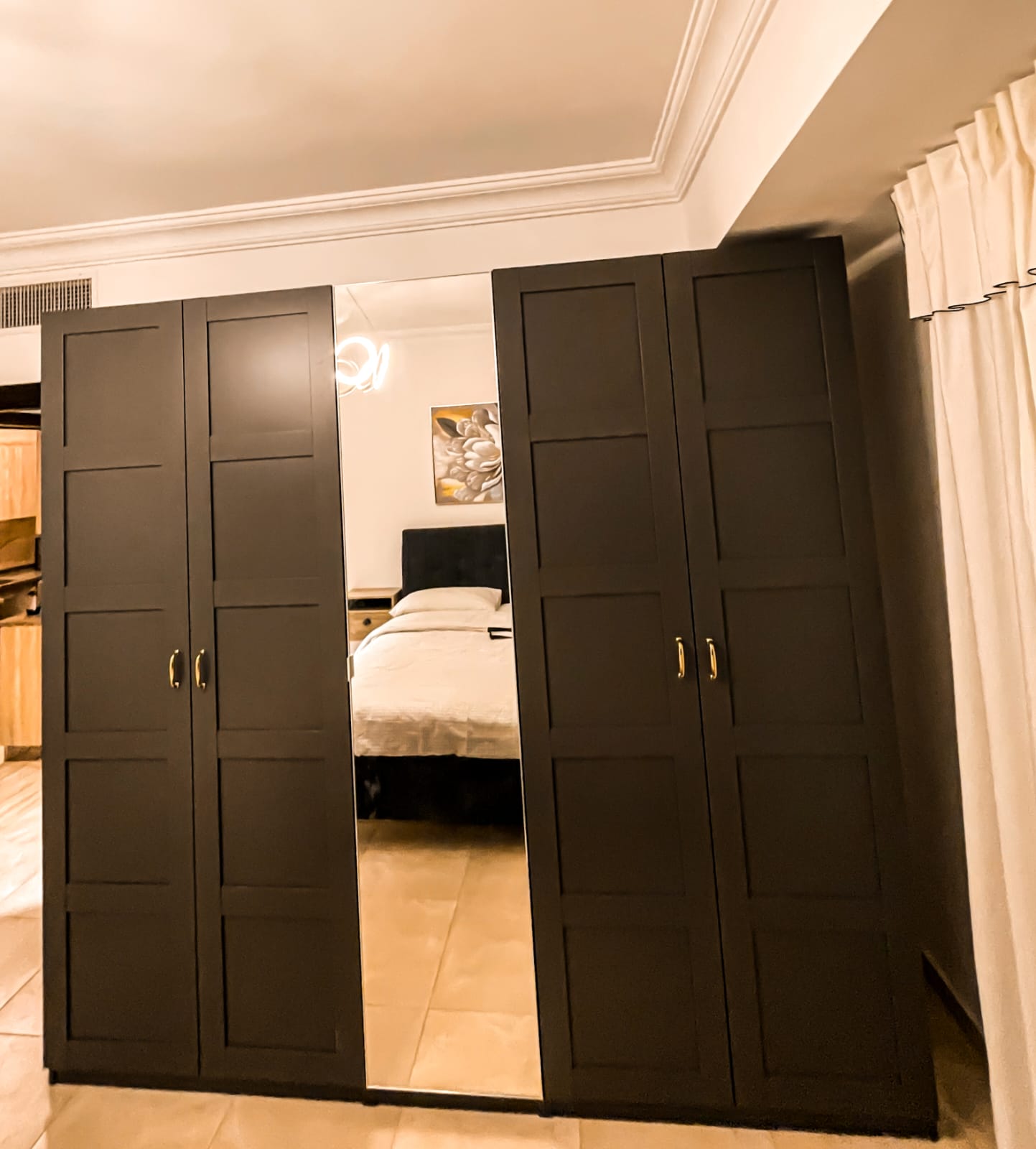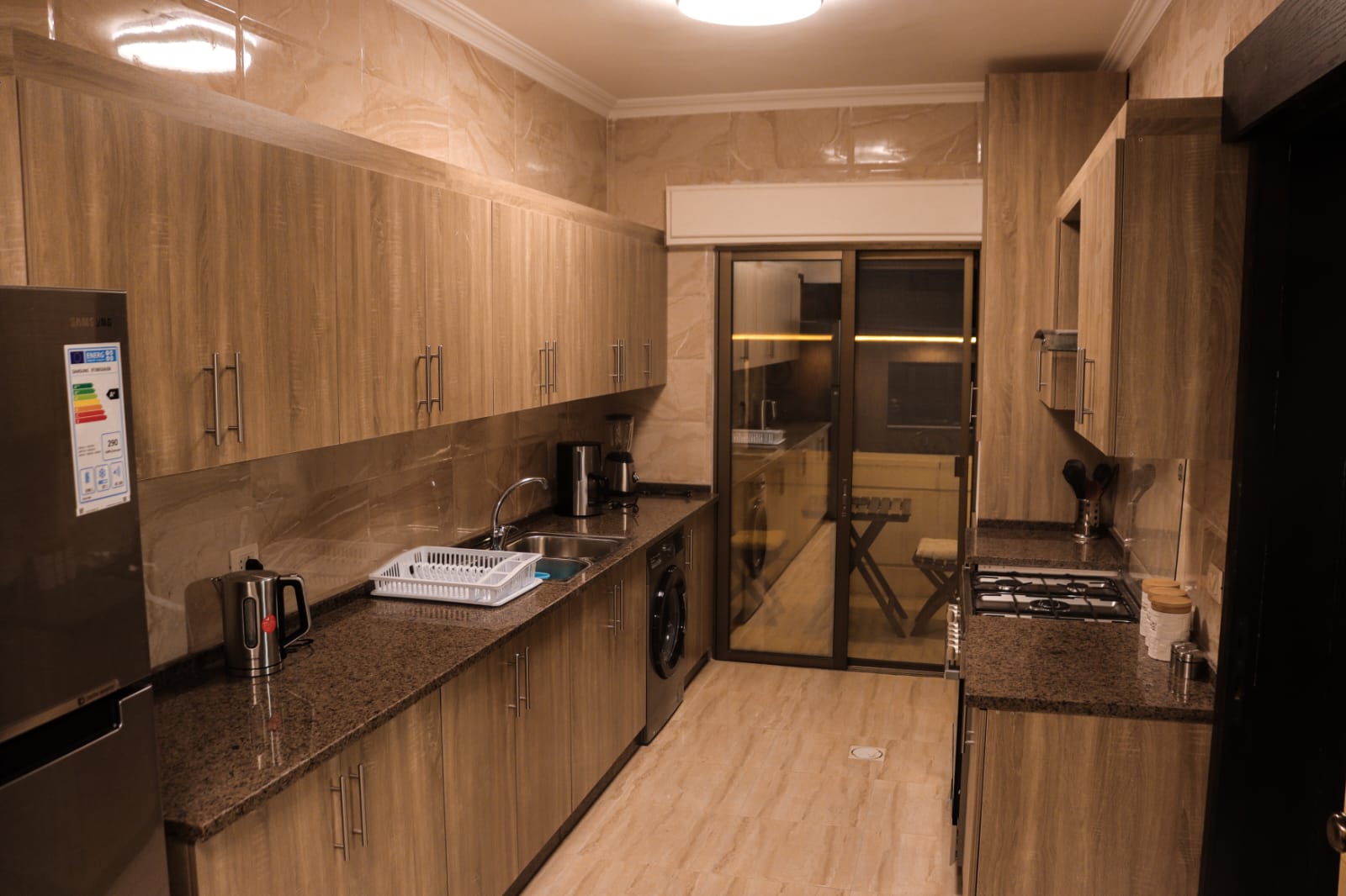 ستديو للايجار مكون من غرفتين وحده ماستر صاله مطبخ نظام امريكي ترس واسع باحدث تشطيبات مجهز بالكامل
