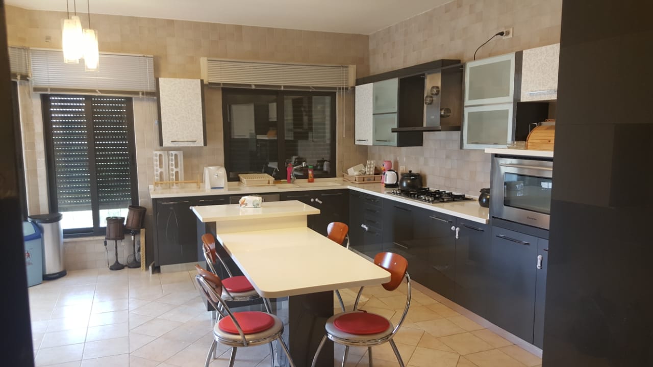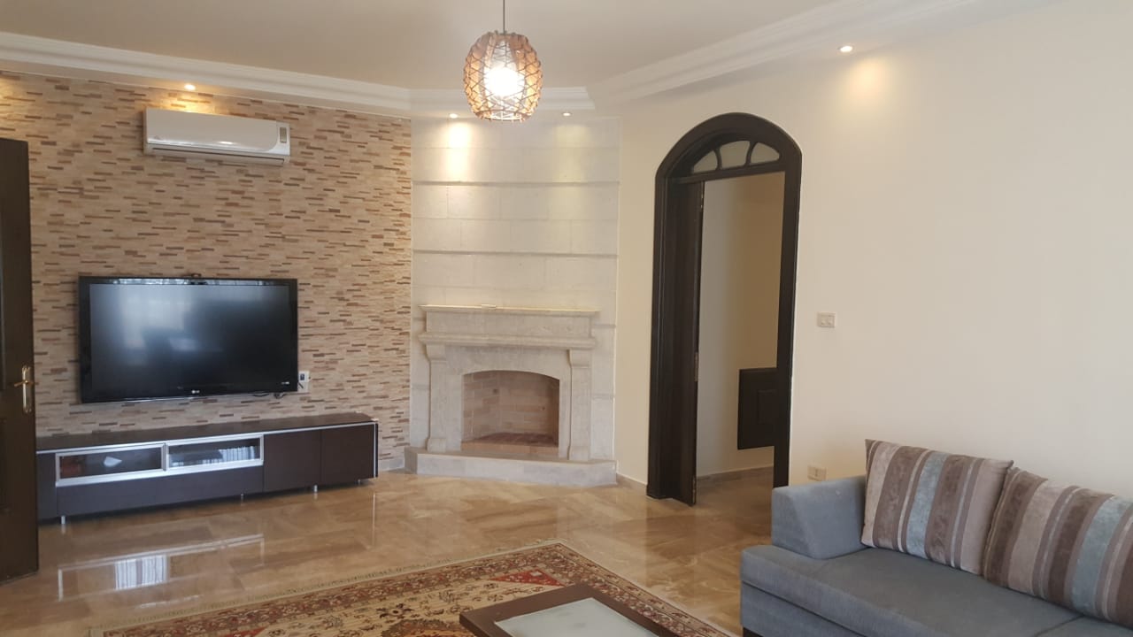 Apartment for rent in Abdoun North - Cosmo side, furnished, area 313 m, 4 bedrooms, 2 master, 4 bathrooms, kitchen, 2 terraces, underfloor heating, electric shutters, elevator, building garage, air conditioners. Price: 20,000 thousand annually.